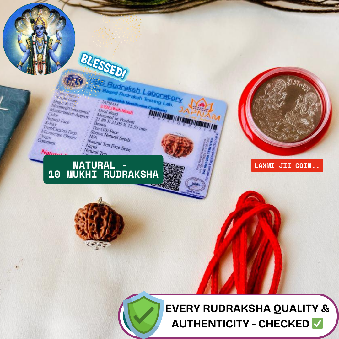 The 10 Mukhi Rudraksha is a powerful bead that offers protection from negative energies and enhances spiritual focus. Ideal for those seeking peace, success, prosperity, and emotional stability.