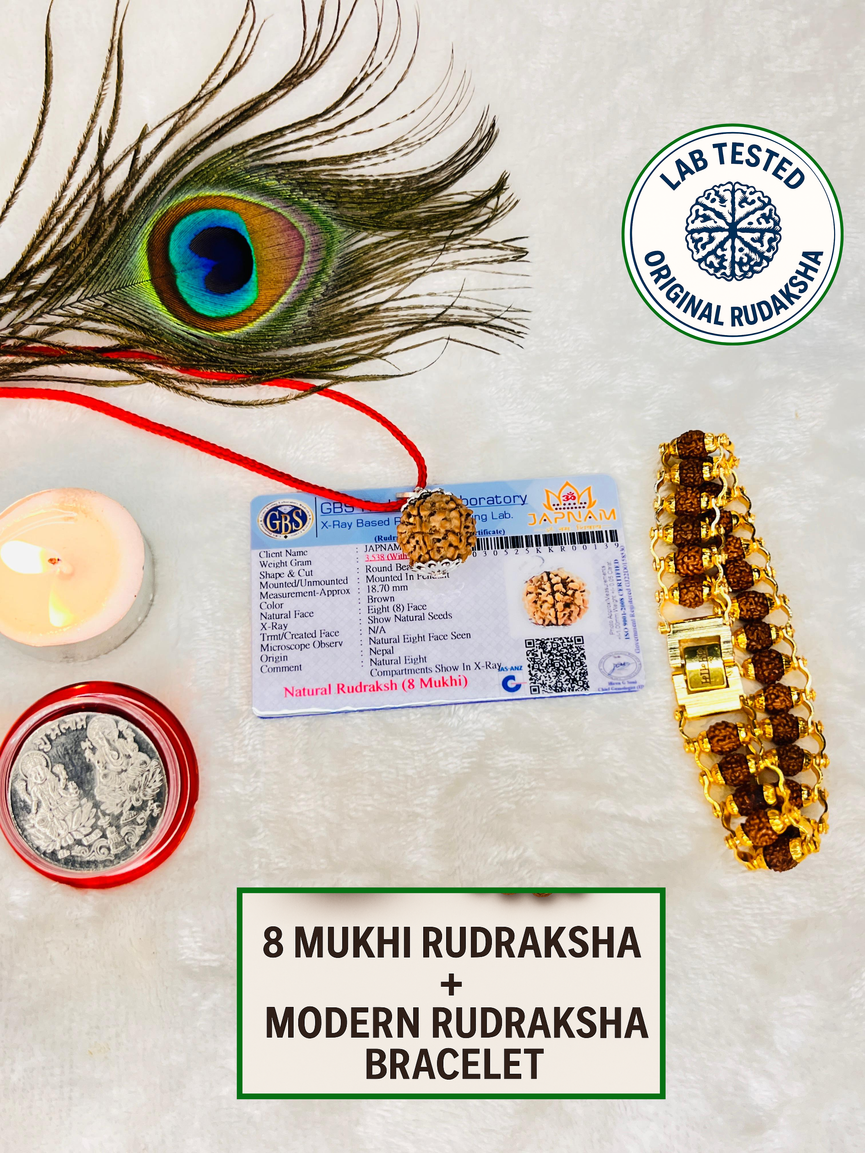 This 8 Mukhi Rudraksha Combo is a powerful solution for success, wisdom, and prosperity. Limited stock available – Order now and remove all obstacles from your path! 🔱✨