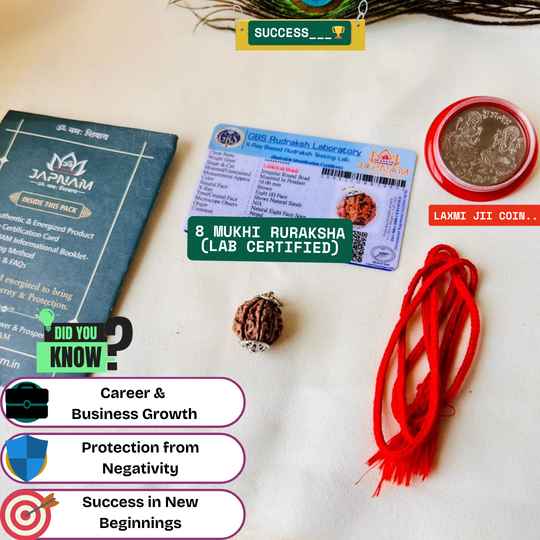 8 Mukhi Rudraksha represents Lord Ganesha, the remover of obstacles and symbol of wisdom & success.