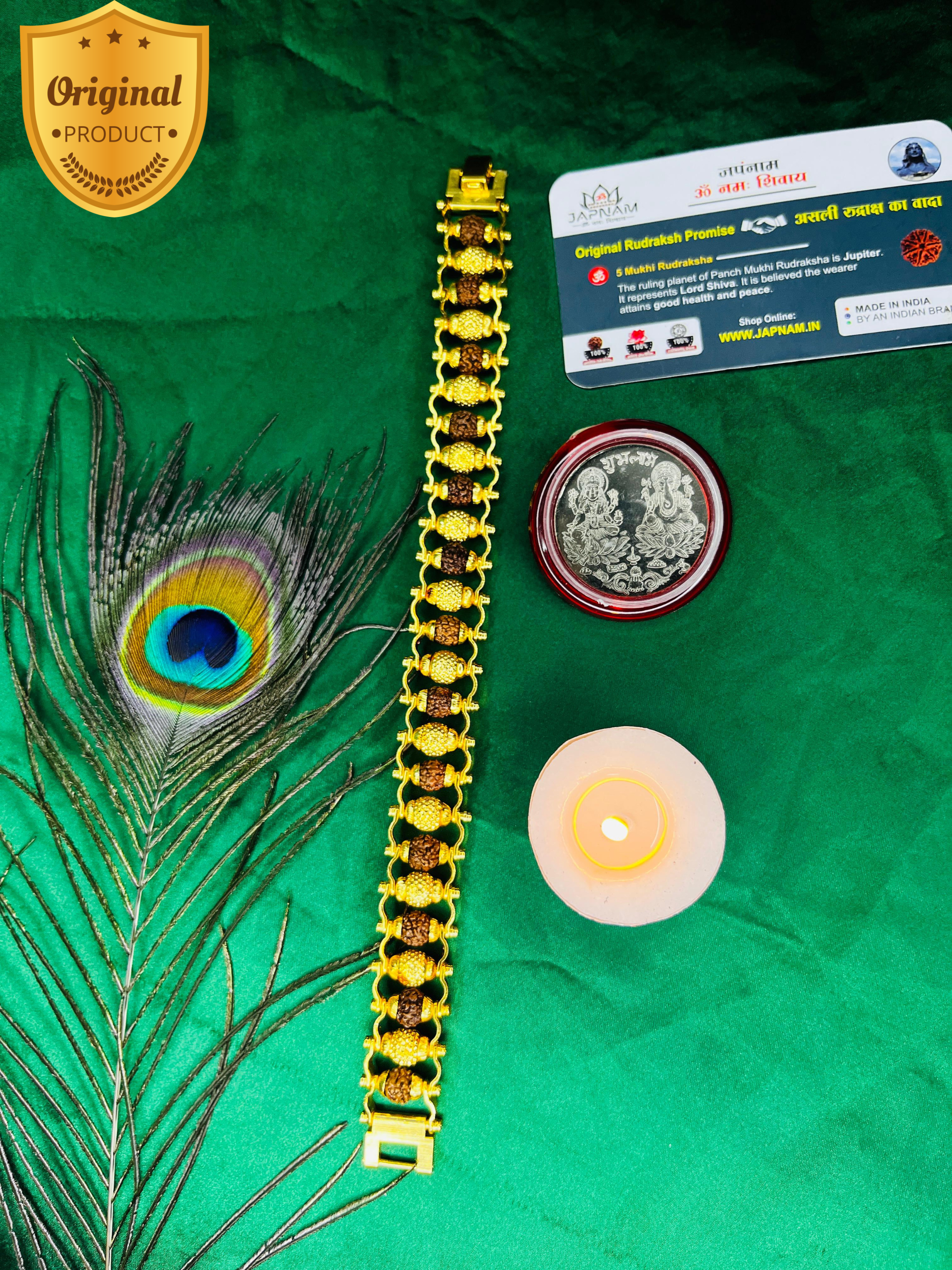Feel confident and radiant with our high-quality gold-plated Rudraksha bracelets, crafted for durability and timeless charm.