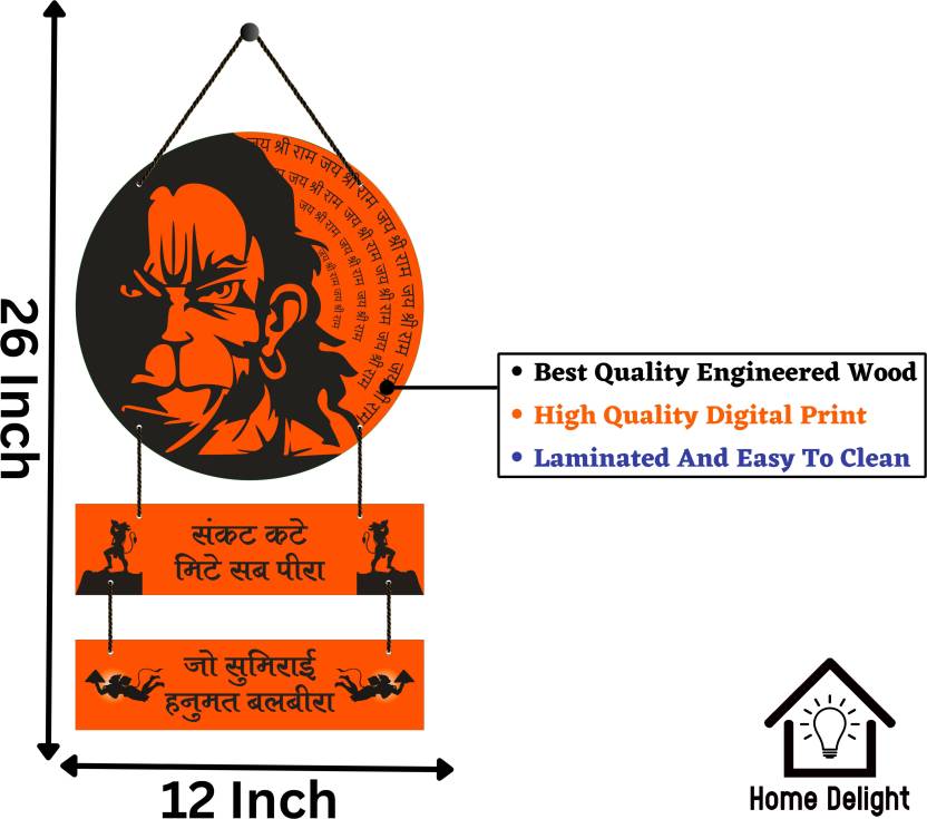 Made from high-quality wood, this wall hanging features a vibrant and detailed image of Lord Hanuman, depicted in his classic form with his mace and gada. The intricate carving and subtle coloring bring the image to life, creating a piece that is both eye-catching and inspiring.