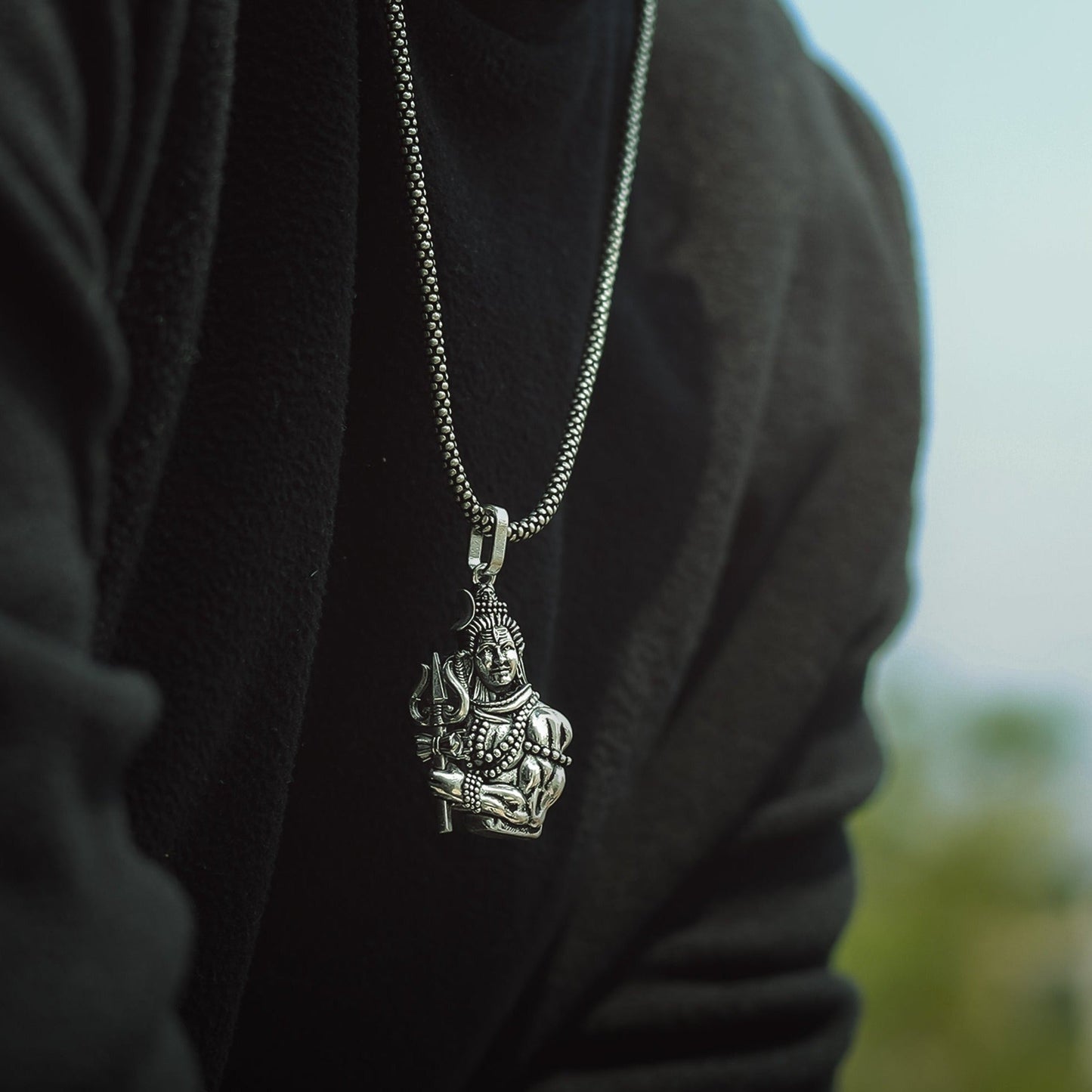 Unleash the transformative energy of Lord Shiva with our Lord Shiva with Trishul Pendant Chain. Crafted with reverence and precision, this striking pendant features the revered deity Shiva, holding his iconic Trishul, symbolizing supreme strength, protection, and spiritual mastery.