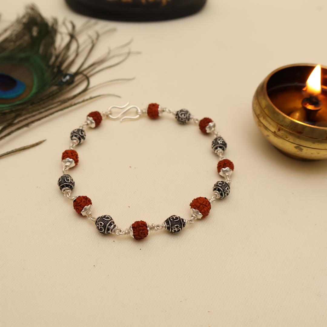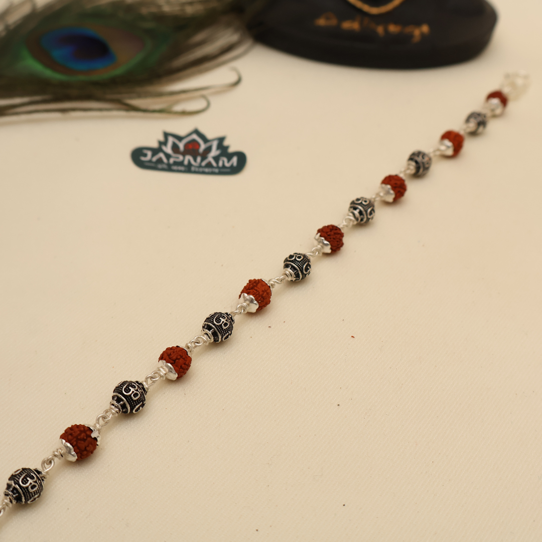 🕉️ Original Silver & Authentic Rudraksha – Om Beads Bracelet
