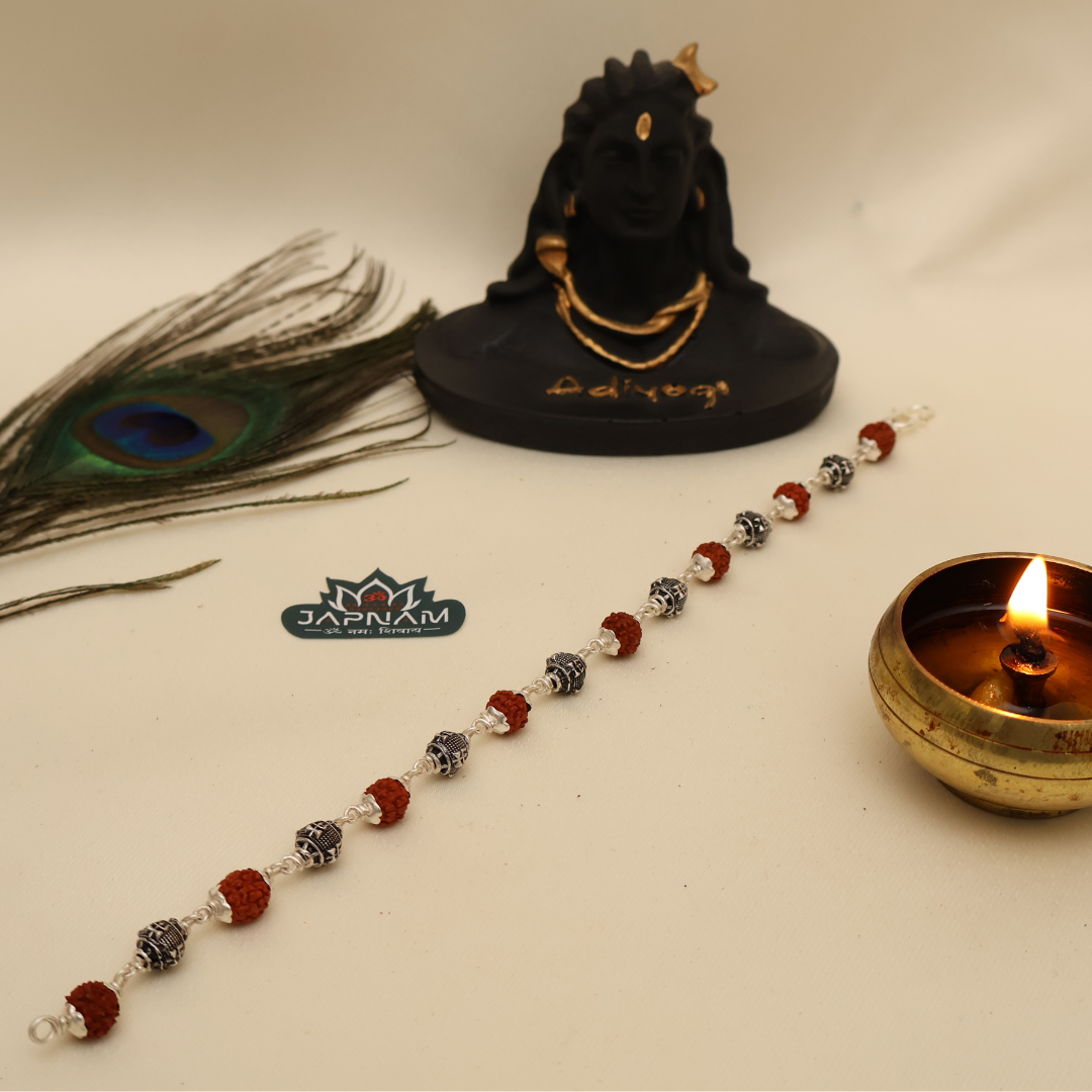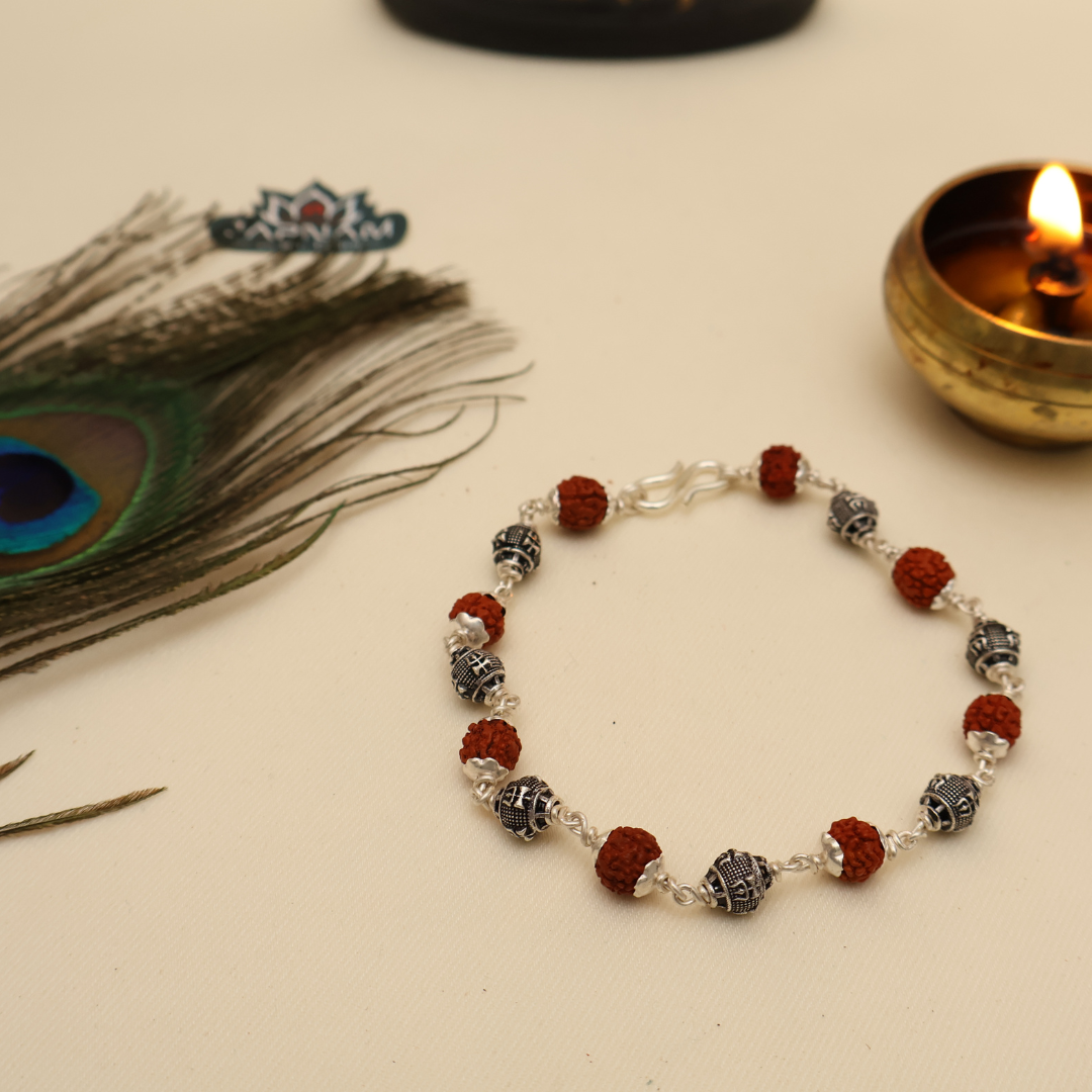 🕉️ Original Silver & Authentic Rudraksha – Trishool Beads Bracelet